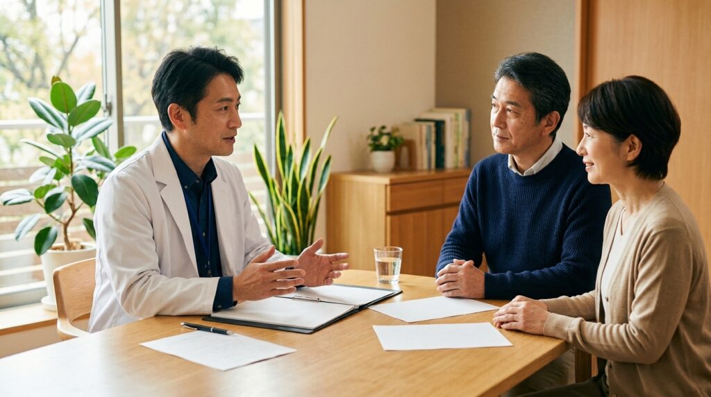 最初の段階は精神保健指定医による診察です。患者を精神保健指定医が直接診察し、精神障害の有無および入院の必要性を判断します。次に、病院の管理者が患者の家族等(または市町村長)に対して、患者の病状・入院の必要性・入院形態・入院中の処遇・退院請求の権利などについて十分に説明し、同意を取得します。この段階で同意者の本人確認を行い、同意書への署名を得ます。