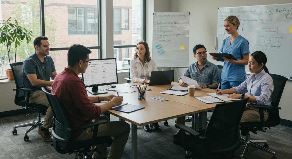 就労移行支援事業所では、段階的にスキルを習得していく体系的なプログラムが組まれています。主な訓練内容は、ビジネススキル訓練、生活管理・健康管理、模擬就労・職場体験の3つの領域に分類されます。