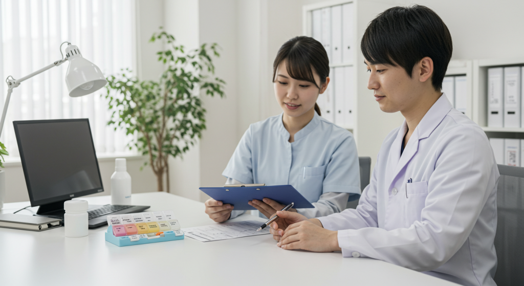 薬の保管指導では、適切な保管方法について具体的な指導を行います。温度管理、湿度管理、光の影響、他の薬との分別保管など、薬の品質を維持するための知識を提供します。また、携帯用の薬ケースの使用方法や、外出時の服薬管理についても指導します。