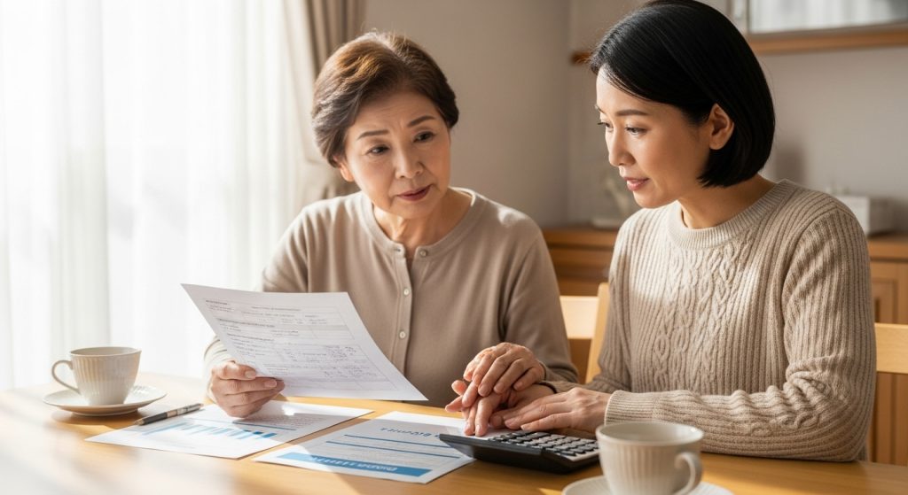 家族の支援を求めることも重要な対処法です。複数の子どもがいる場合、きょうだいで費用を分担することで一人あたりの負担を大幅に軽減できます。例えば月額12万円の施設費用を3人のきょうだいで分担すれば、一人あたり月4万円の負担となり、それぞれの家計への影響を抑えることができます。